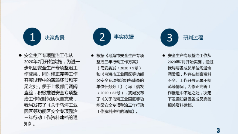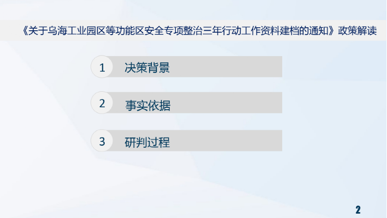 | 標 題: | 《關(guān)于烏海工業(yè)園區(qū)等功能區(qū)安全專項整治三年行動工作資料建檔的通知》政策解讀2 | ||||||||