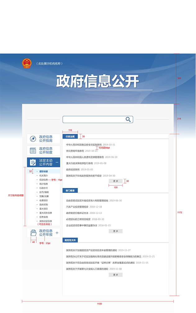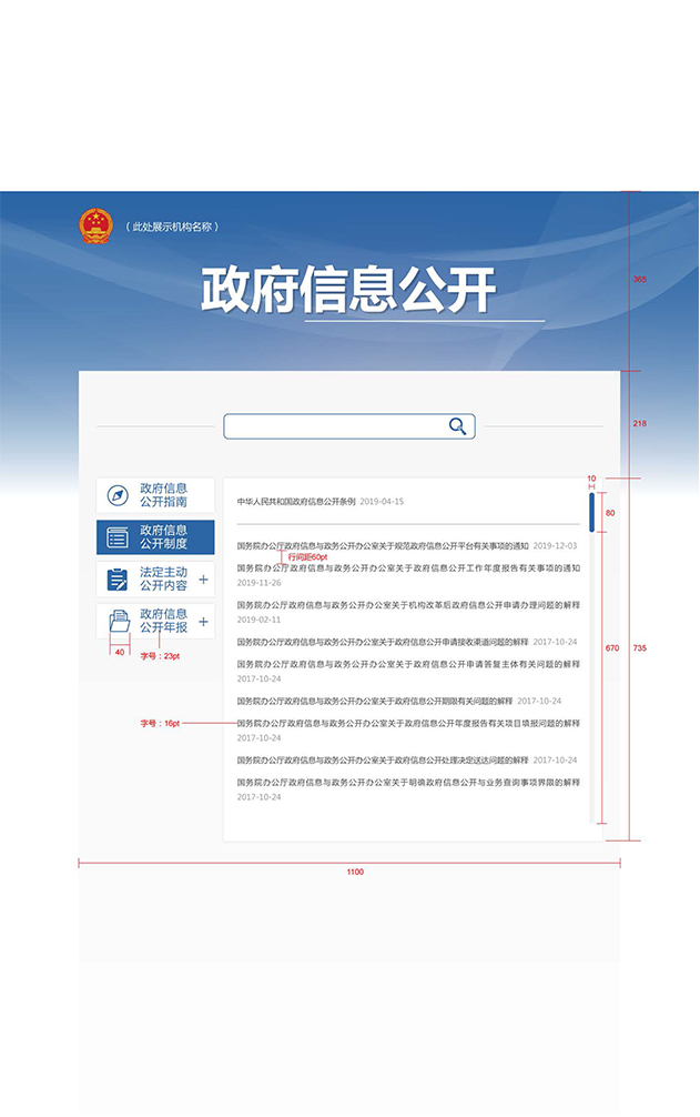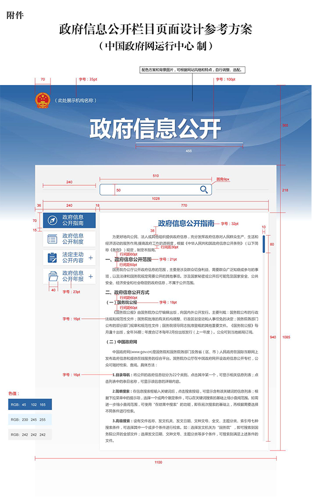 中國政府網運行中心根據上述要求設計了“政府信息公開欄目頁面設計參考方案”,供參考使用。