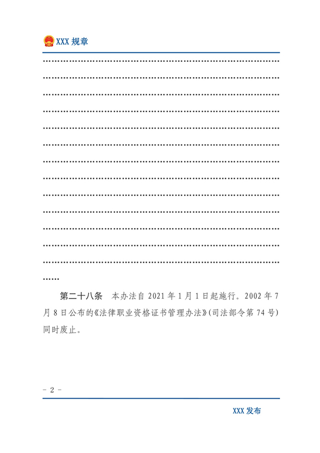 一、規(guī)章制定或修改時,按照《規(guī)章制定程序條例》規(guī)定,由主要負責人簽署命令予以公布。規(guī)章集中公開時,只公開標題、題注和正文,不重復公開負責人簽署的命令。題注應當包含公布時間及文號、修訂時間及文號、施行時間等標識性信息,具體請參照中國政府法制信息網(司法部網站)“行政法規(guī)庫”的題注格式。