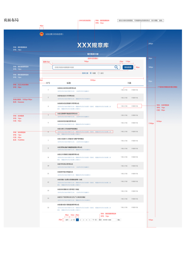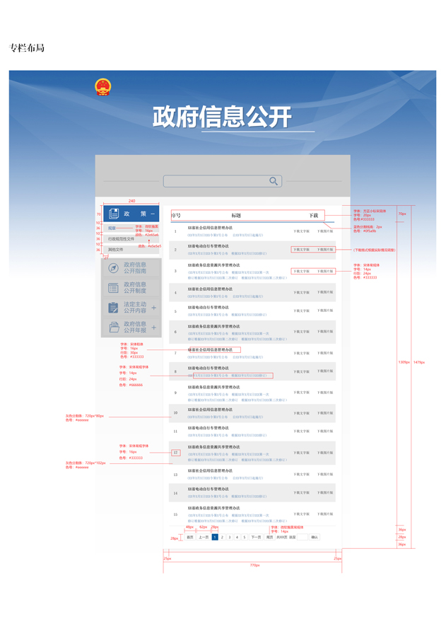 規(guī)章網頁版式、下載版式及專欄頁面設計方案